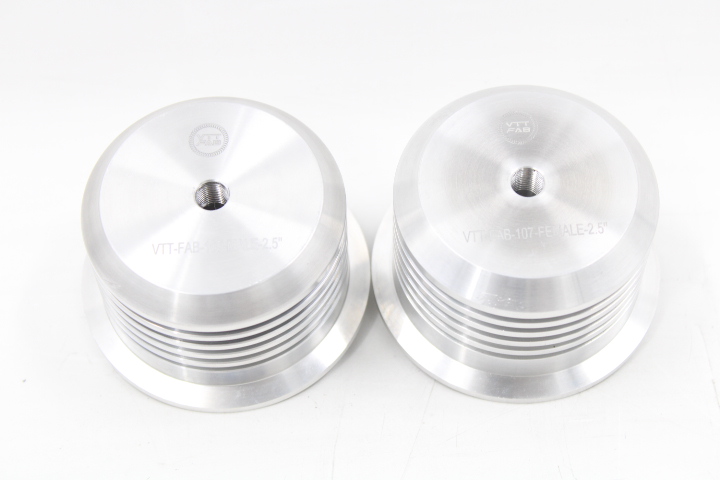 Crafted from 100% billet-machined 6061-T6 aluminum, these V-bands feature precisely machined fins that facilitate rapid heat release. Additionally, they are equipped with dual 1/8″ NPT ports on both the top and bottom, with the interior port incorporating a built-in diffuser to ensure optimal gas flow during back purging.